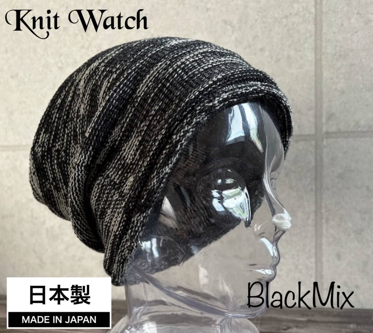 - 帽子 日本製 Mサイズ ニット帽 ワッチ ビーニー 秋冬 ロールアップ メンズ レディース 定番 こだわりの日本製 ブラックミックス