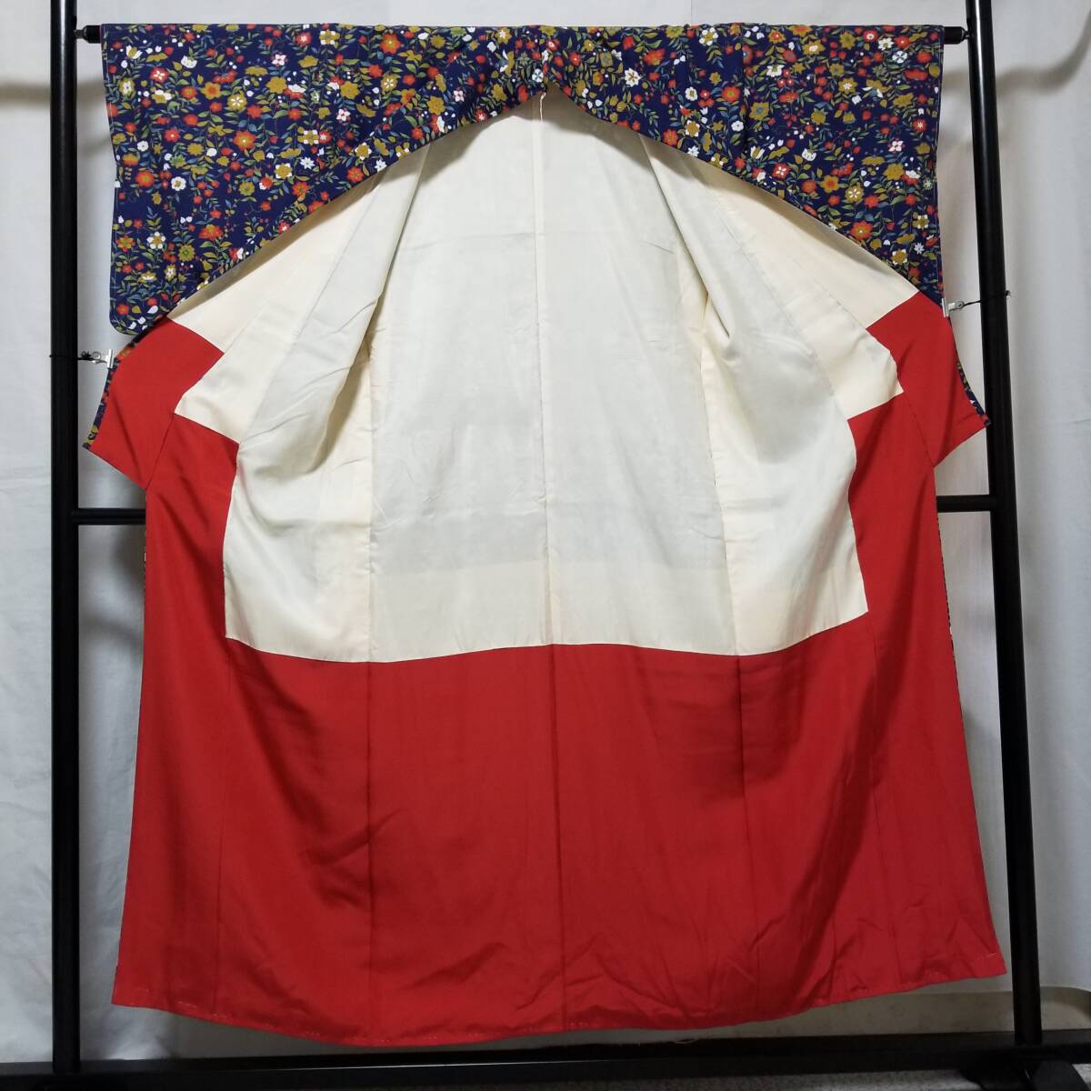 > 【桐輪】小紋☆唐花.小花文様☆送料無料*仕付け糸付*美品{正絹*一越地*袷仕立.小紋}*身丈155-裄65*紺青色地*暈し染の唐花.小花*№4262