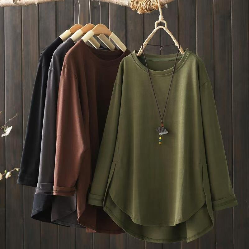 > LRM4464★長袖 tシャツ レディース ロング チュニック 薄手 Tシャツ トップス 秋 春 大きいサイズ プルオーバー カットソー