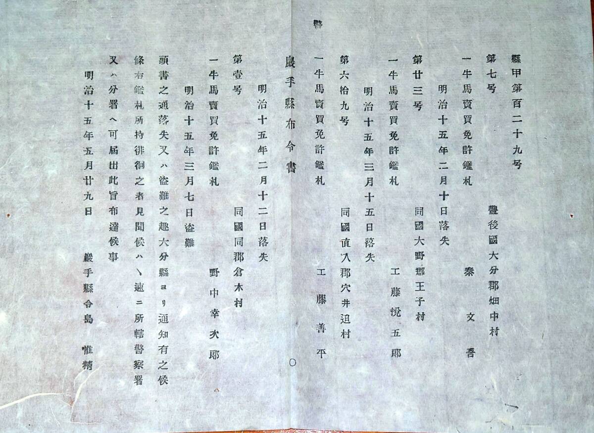 - f24081439〇明治布告布達 牛馬売買免許鑑札 明治15年〇和本古書古文書