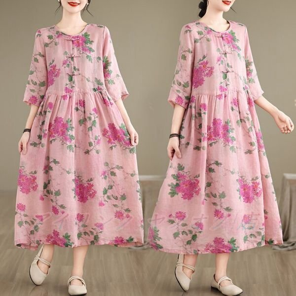- ☆新品サイズ選択可 ワンピース 半袖 きれいめ プリント柄 ロング丈 ワンピース ワンピース 女性 普段着 素敵 涼しげ