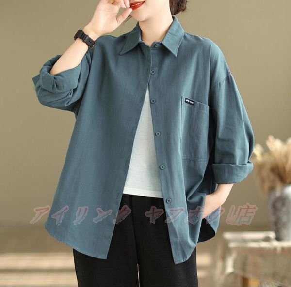 - ☆新品サイズ選択可 森ガール ブラウス シャツ レディース 綿麻調 ゆったり 大きいサイズ カジュアル風 ビジネス トップス ブルー