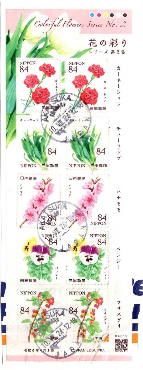 - 花の彩りシリーズ第2集 84円10枚ペーン 実逓 欧文印 使用済 記念 切手 令和6年