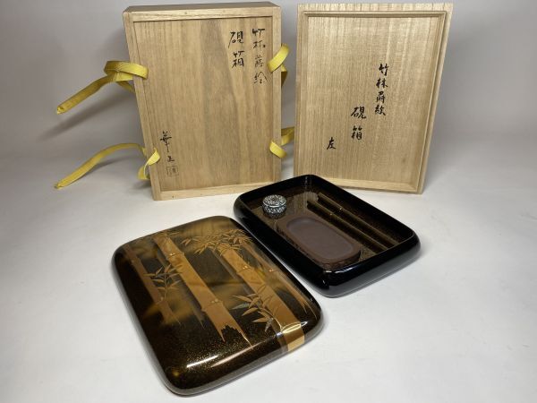 - 【雪華】 吉田 華正 竹林 蒔絵 硯箱 猶有斎 書付 茶道具 【 表 千家 而妙斎 即中斎 川端 近左 宗哲 】