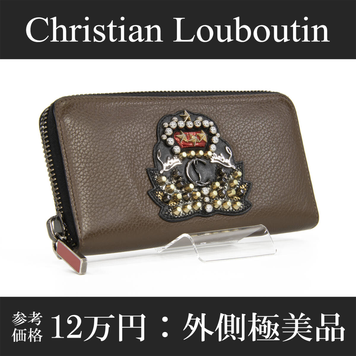 - 本物 送料無料 ルブタン 長財布 ラウンドファスナー メンズ レディース パネトーネ 茶色 ブラウン スタッズ 王冠 エンブレム レア T030
