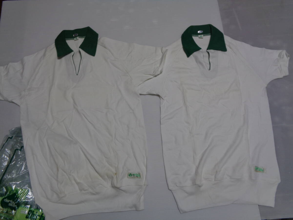 - 2枚 M 白×緑 ダービースター 半袖シャツ 体操着 体操服 昭和レトロ 未使用カビシミ汚れ!難有!