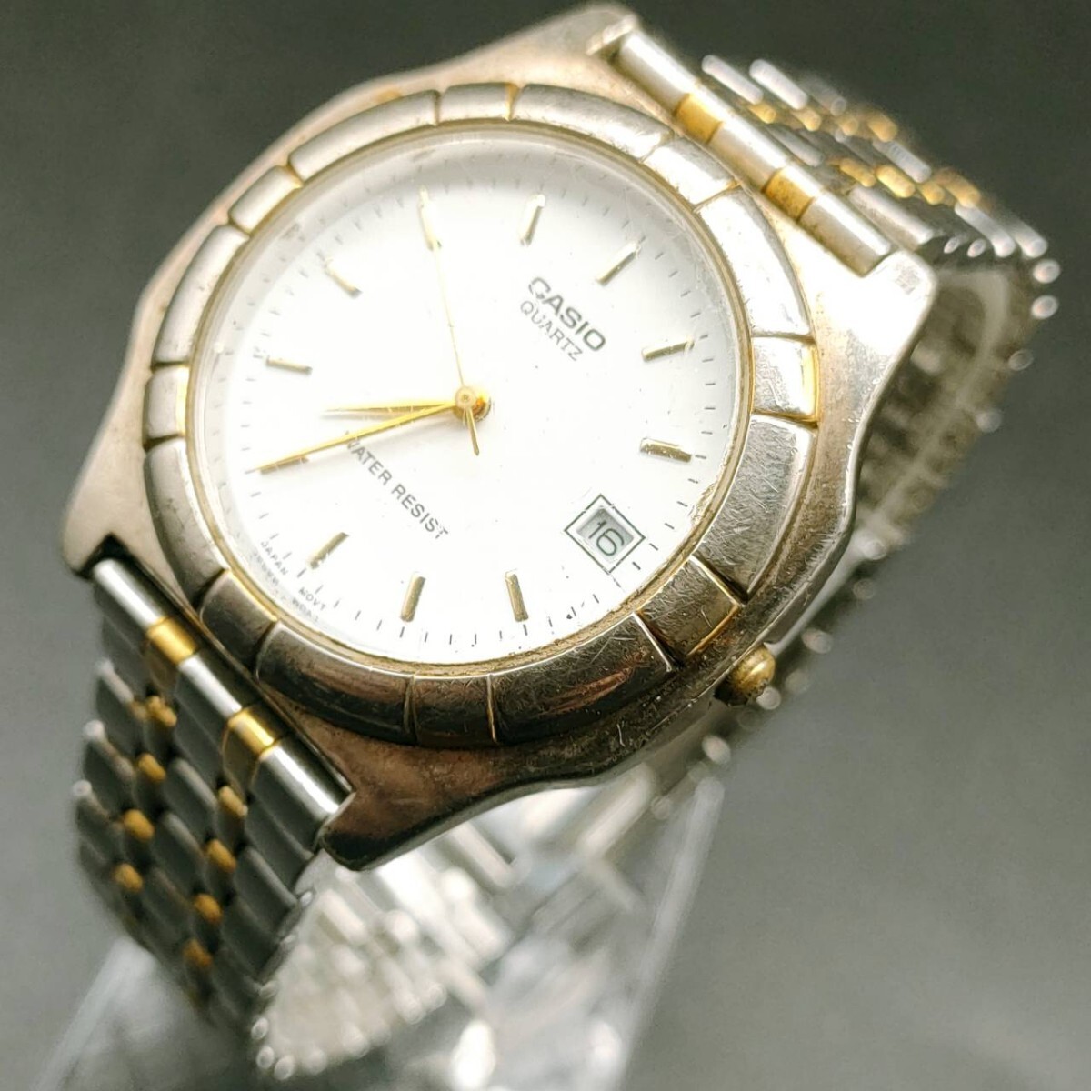 - T302 【レア】 CASIO カシオ 腕時計 1332 MTP-1061 クウォーツ 3針 白文字盤 デイト アナログ ヴィンテージ アクセサリー シルバー