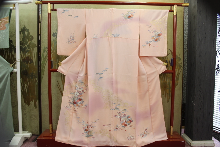 > きもの今昔7702 付け下げ訪問着 高級手加工本格友禅 正絹梨地綸子生地に本糸目加工に金箔加工 身丈157cm