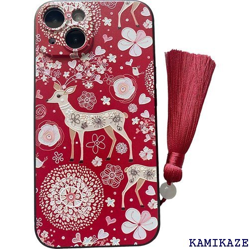 - KOLO 花と鹿 iPhone対応 16 ケース iP 和柄のスマホケース スマホカバー 赤 iPhone16 3189