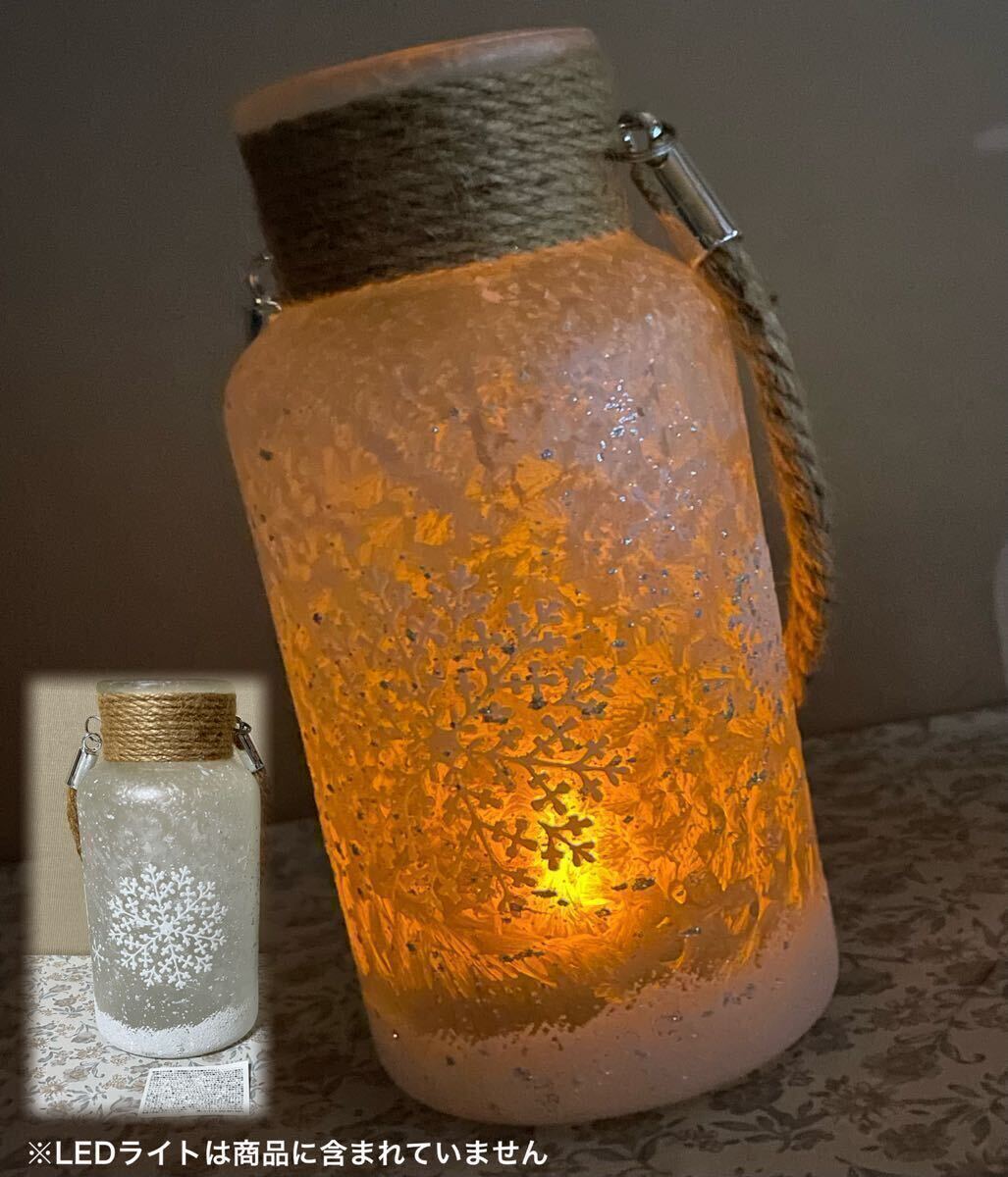 - キャンドルホルダー 瓶 ビン 麻紐持ち手付き 壁掛け 小物入れ インテリア 輸入雑貨スパイス 雪の結晶模様 白 ホワイト スリガラス/検 花瓶