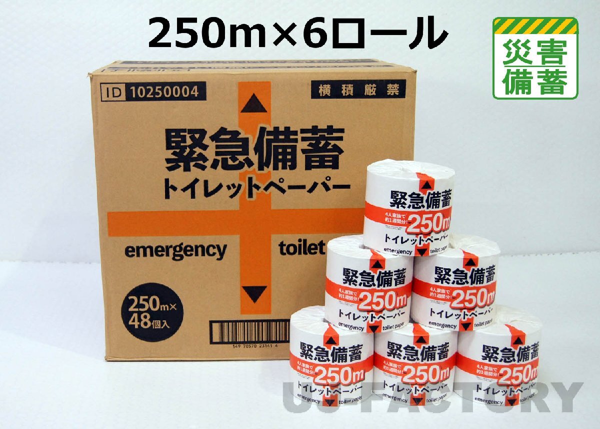 - 【緊急備蓄トイレットペーパー】★ながーく使える 107mm幅×250m 【×6ロール】★ソフト・シングル/ミシン目無し/紙管無し