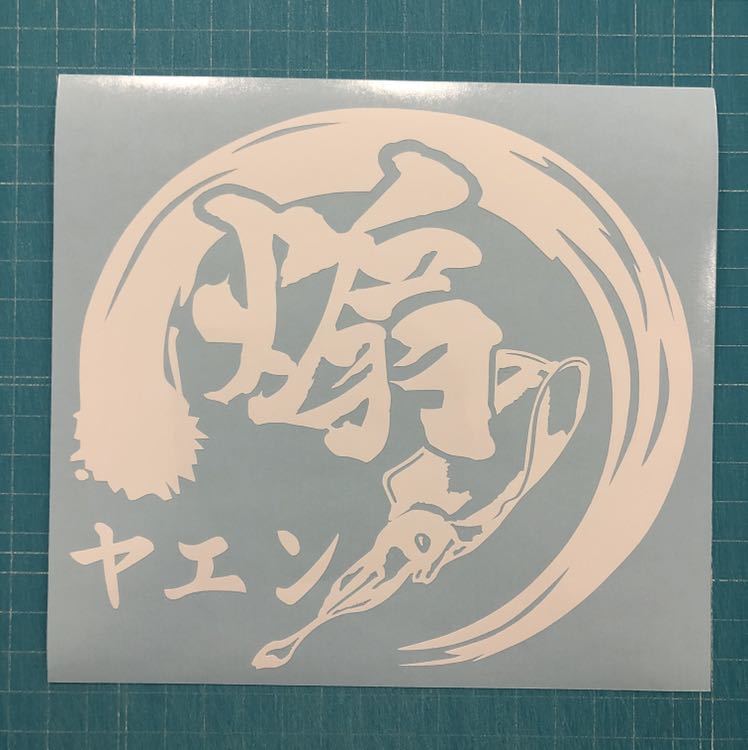 - お得2枚セット アオリイカ 煽 ヤエン 切り文字ステッカー 白色 ダイワ 餌木 スルメイカ コウアカ ヤリイカ エギング