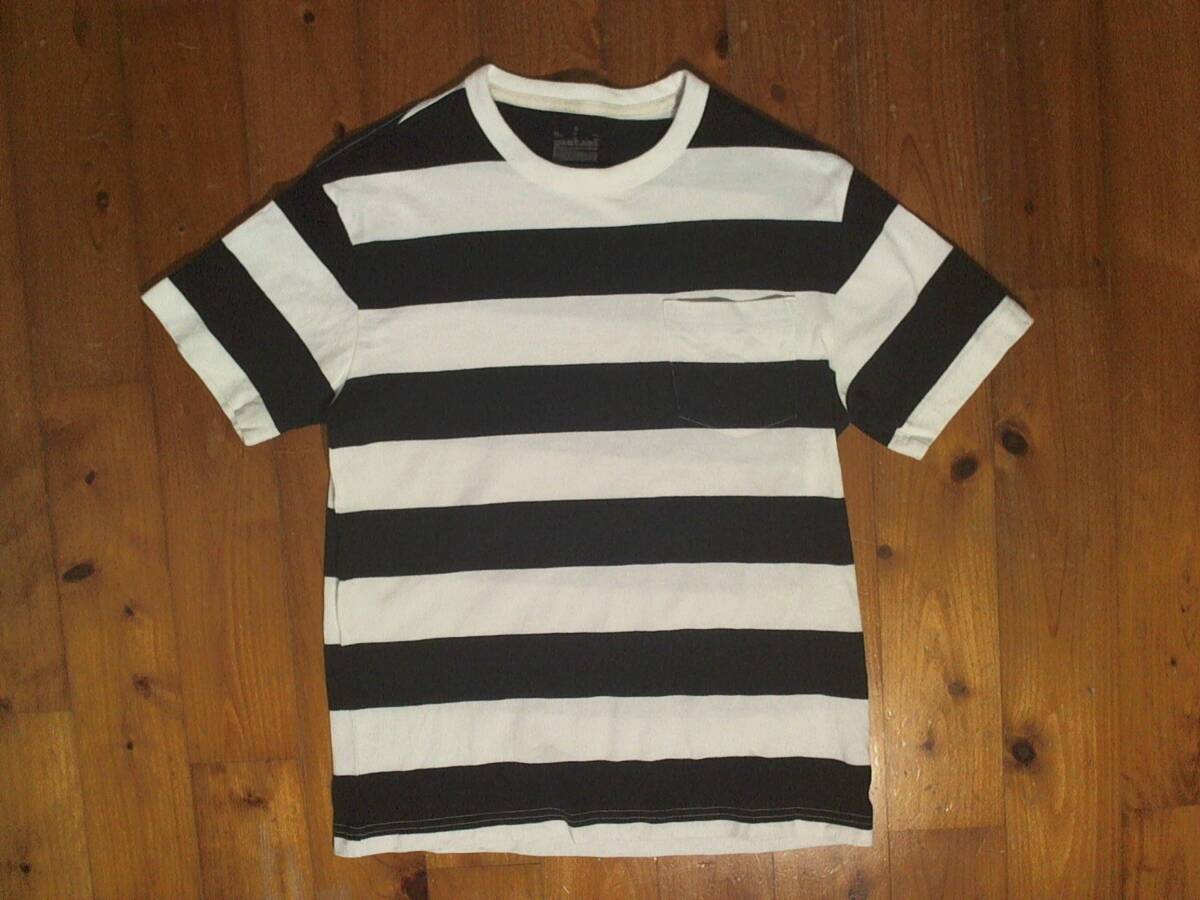 > ☆松☆無印良品☆良品計画☆クルーネック ボーダー コットン 半袖Tシャツ S クロ白系