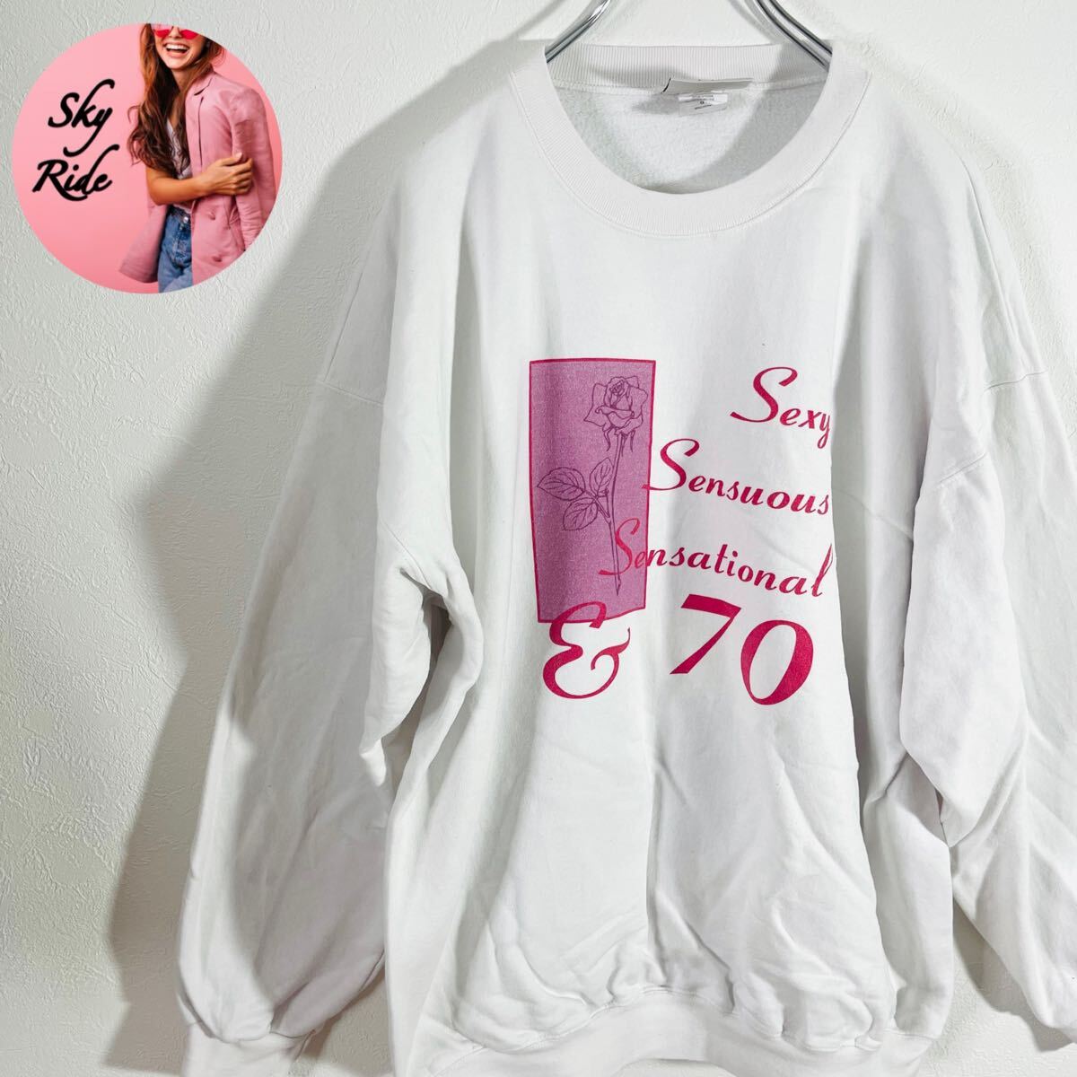 > Hanes ヘインズ メンズ ヴィンテージ 花 英字 ビッグプリント プルオーバースウェット トレーナー ホワイト L 古着 #TB0988