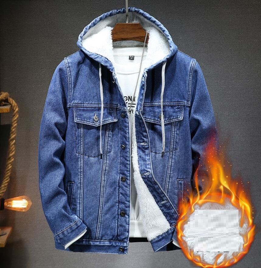 - 秋冬/メンズ 裏フリース デニムジャケット メンズ 裏ボア ジージャン バイクジャケット 防寒 厚地 作業服 アウター デニムパーカー/ブルー