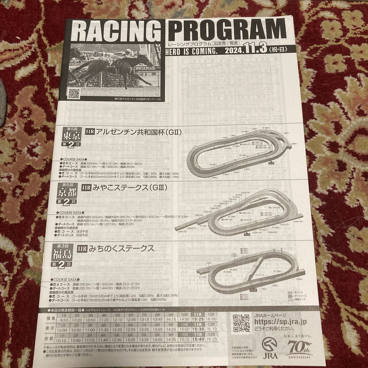 - JRAレーシングプログラム2024.11.3(祝・日)アルゼンチン共和国杯(GⅡ)、みやこステークス(GⅢ)、みちのくステークス