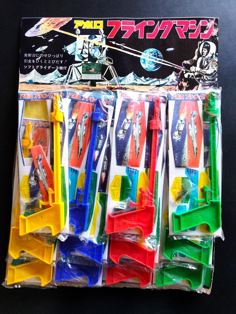 > 宇宙対決 UFO アポロ フライングマシン 12p 台紙セット 未使用 当時品 !! ☆ ピストル型発射台 + ソフトグライダー 3機 ×12 F-104 戦闘機