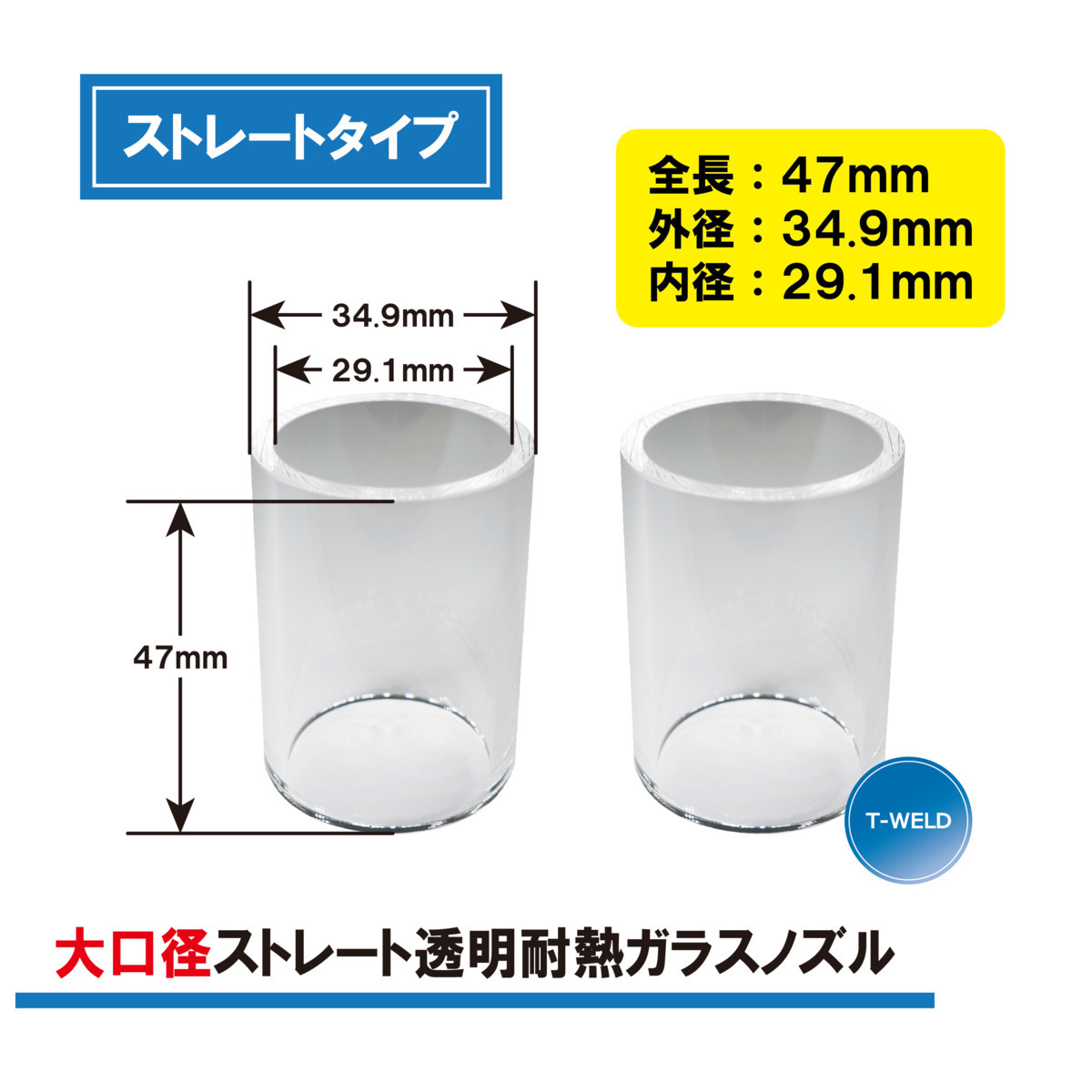- TIG 溶接 WP-17/18/26 大口径ガスレンズ 「ストレートタイプ」 透明耐熱ガラスノズル 長さ47mm 2本・1650円