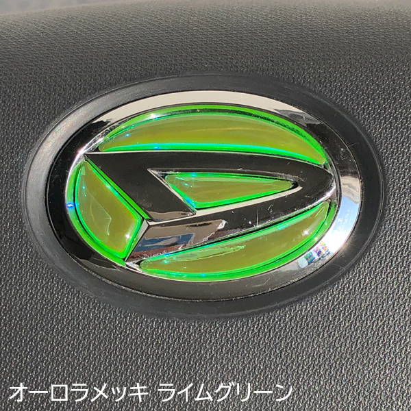 - ダイハツ ステアリング エンブレム オーロラメッキ ライムグリーン SDH-D01 ハンドル用 樹脂盛立体3Dシール マジョーラ レインボー ZEROWIN