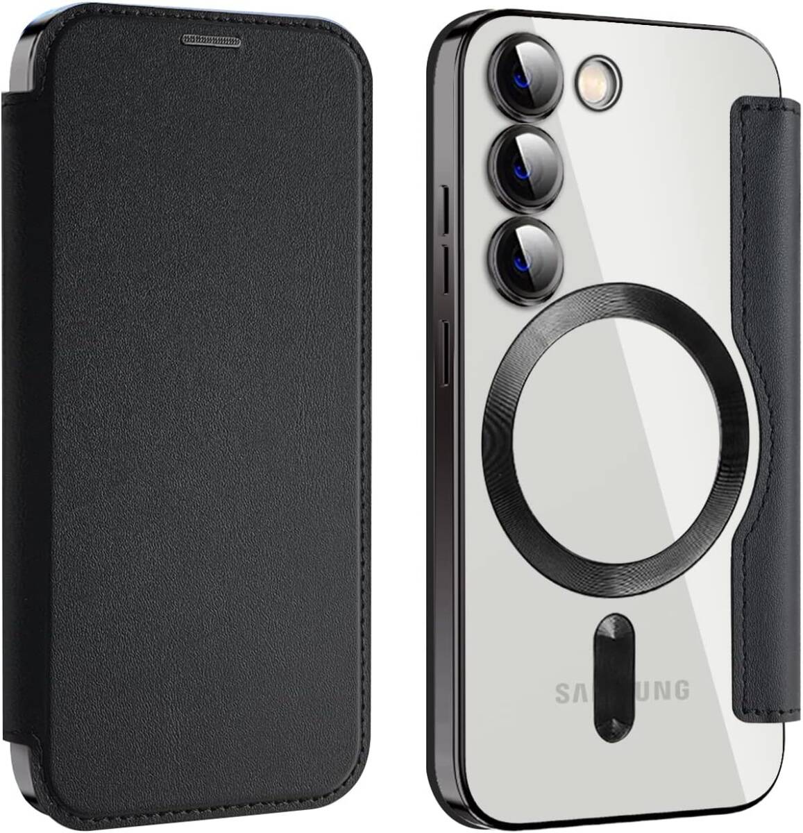 - 【REHOOF】Galaxy S23 ケース 手帳型 magsafe対応 6.1インチ 背面 透明 クリア 財布型 マグセーフ 手帳 ワイヤレス充電対応(ブラック)