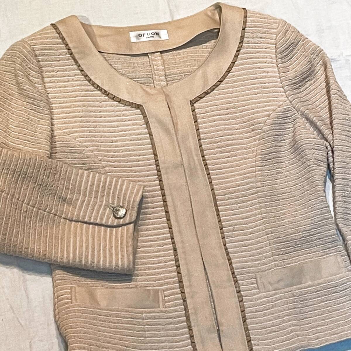 > OFUON BASIC オフオン ベーシック ベージュ ジャケット ノーカラー フォーマル M オフィス スーツ 古着 長袖 ZARA シャネル 卒業 結婚
