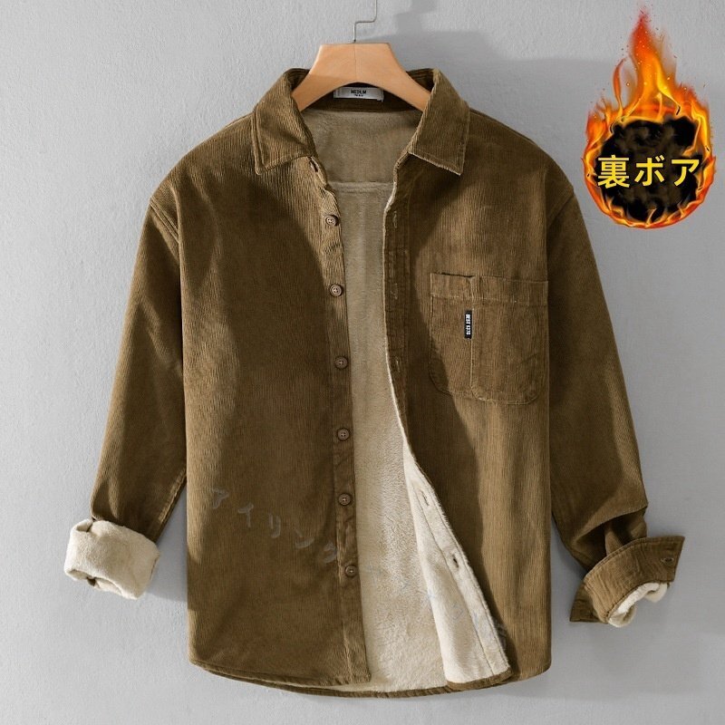 - ☆新品 トップス 長袖シャツ 裏ボア裏フリース メンズ シャツジャケット ウエスタン ライトアウター カーキ 2XL