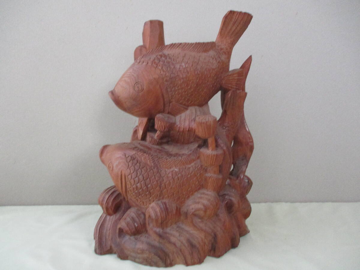 - 鯉の木彫 : 置物・木彫・天然木・一木造・縁起物・美術工芸品