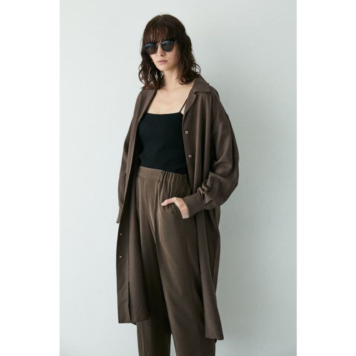 - マウジー DRAPE LOOSE LONG SHIRT 長袖 ブラウン リネン