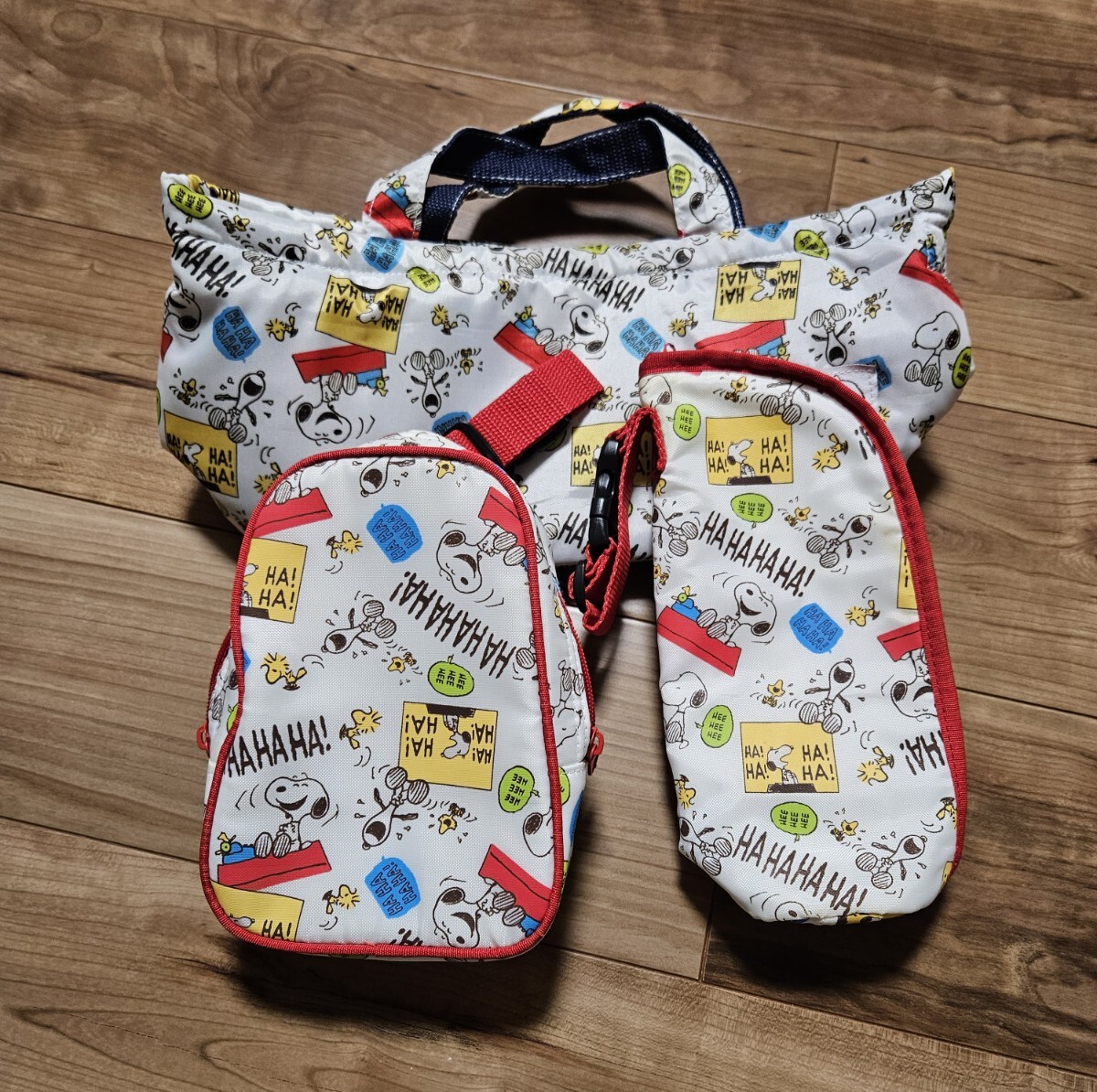 - ベビー用品スヌーピー★ベビーカー収納バック・マグポーチ・哺乳瓶ケース★3点セット
