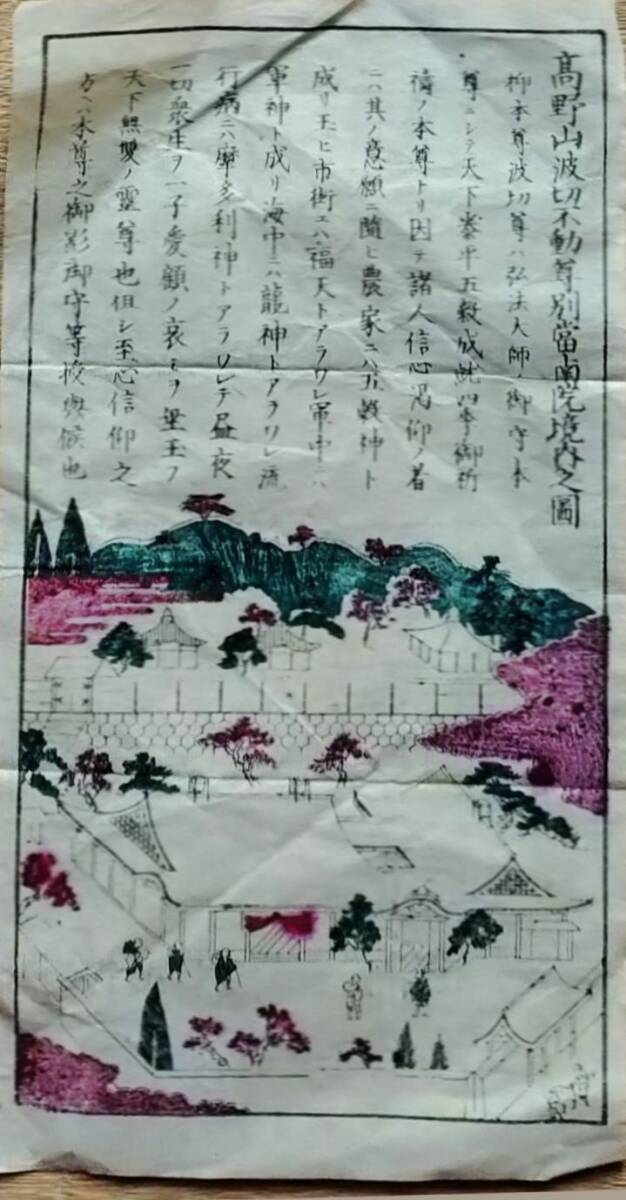 - f24111121〇一枚刷物 摺物 彩色木版 高野山波切不動尊別当南院境内の図 子島真興僧都の建立 江戸時代〇和本古書古文書