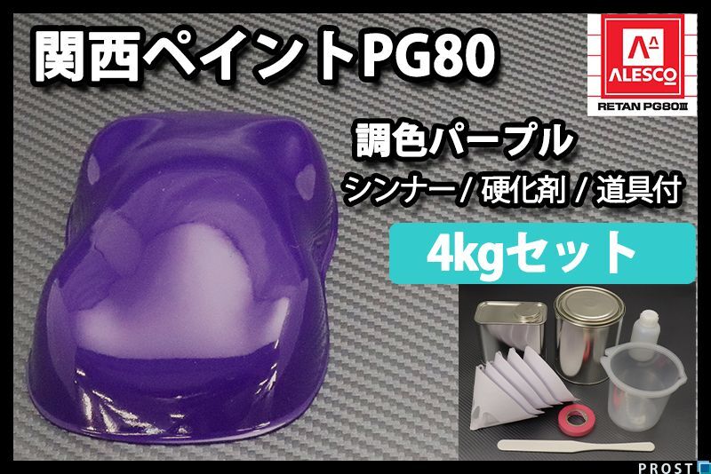 - 関西ペイント PG80 パープル 4kg セット (シンナー 硬化剤 道具付) 2液 ウレタン 塗料 紫 バイオレット Z26