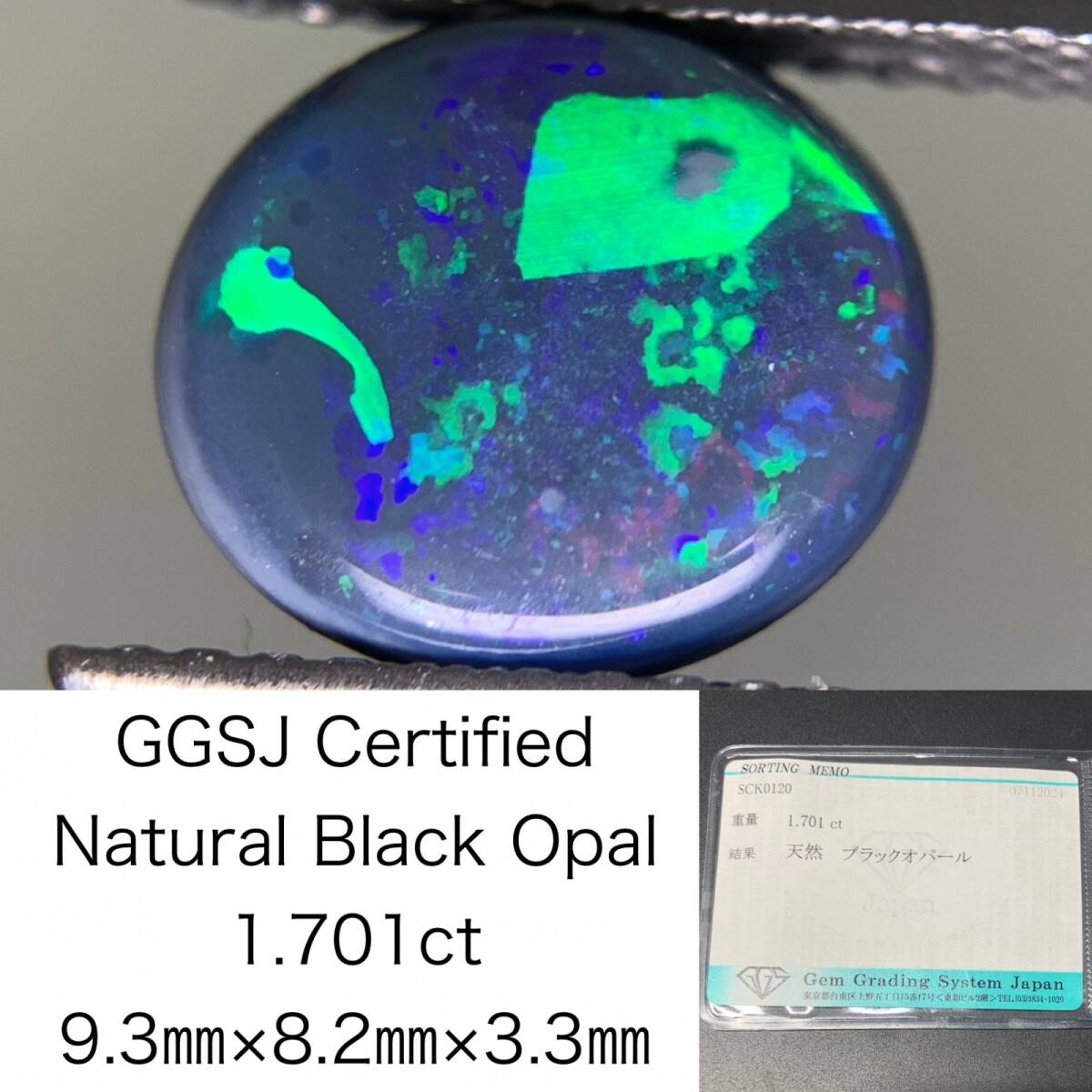 > ブラックオパール 1.701ct 宝石ソーティング付き 9.3×8.2×3.3 ルース( 裸石 ) 3126Y