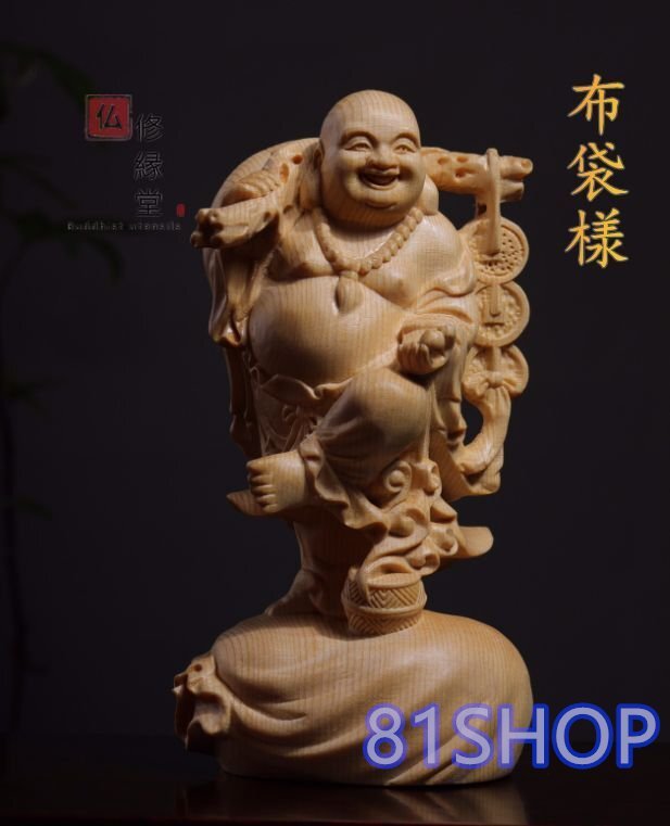 - 「81SHOP」木彫仏像 七福神 立像 布袋様 彫刻 一刀彫 天然木檜材