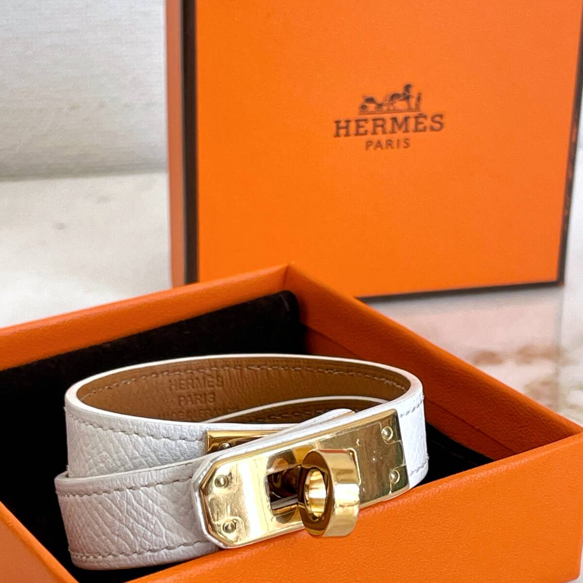 - HERMES エルメス エプソン ケリー・ブレスレット レザー 本革 白×茶