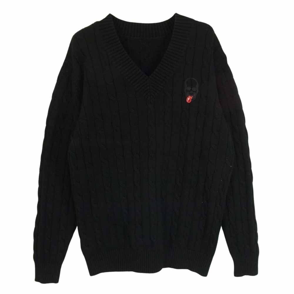 - Lucien Pellat-Finet ルシアンペラフィネ 国内正規品 カシミヤ スカル刺繍 ラインストーン Vネック ケーブル ニット セーター【中古】