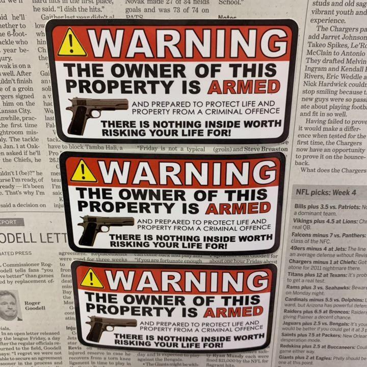 - ステッカー 3枚 セット / GUN WARNING 警告 アメリカン雑貨 シール 防水 車 バイク カスタム 防犯 ピストル おしゃれ セキュリティ