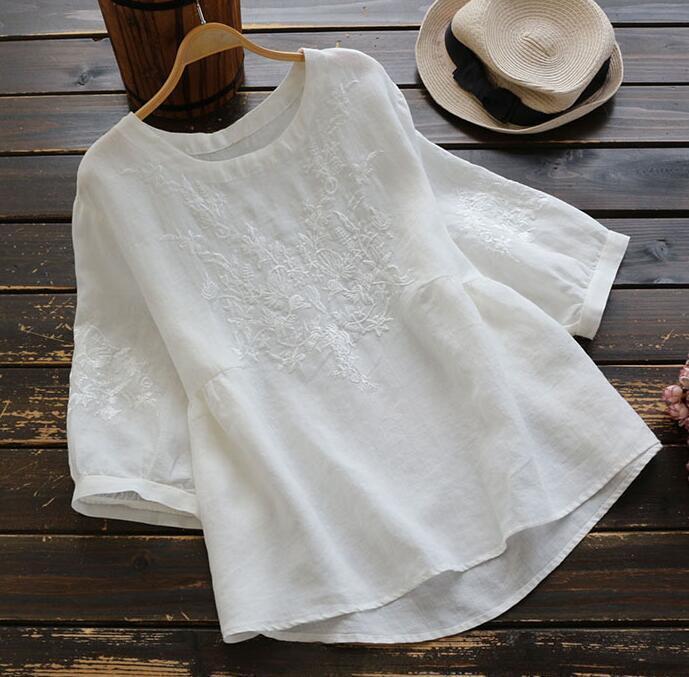 - 夏新品**上質!コットン 刺繍*カットソー レディース 超可愛い ゆったり 着痩せ 着心地良い 半袖 チュニック*4色 M-4XLDJ1822
