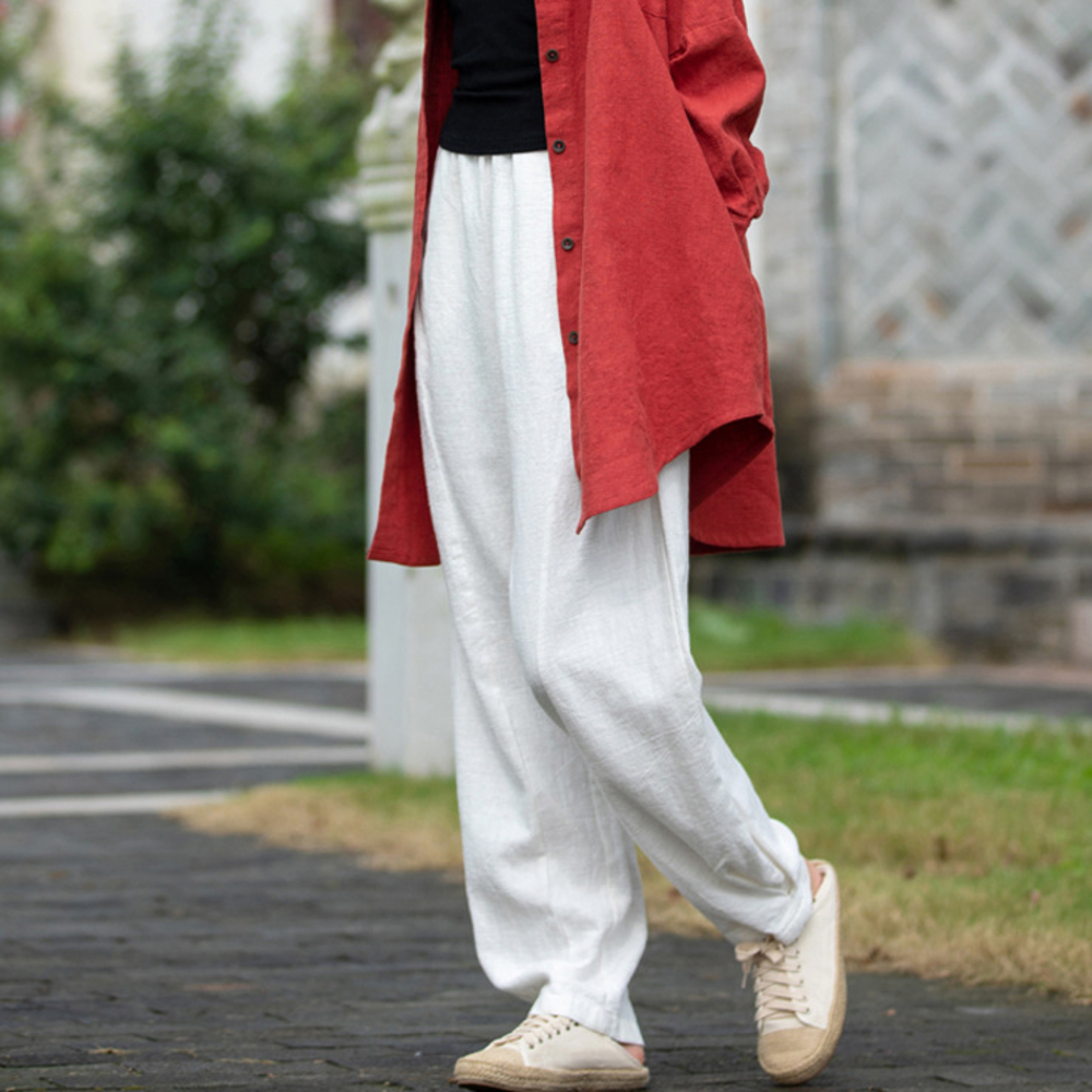- ☆ ホワイト ☆ M ☆ 着痩せバルーンパンツ コットンリネン バルーンパンツ レディース コットン メンズ イージーパンツ サルエルパンツ
