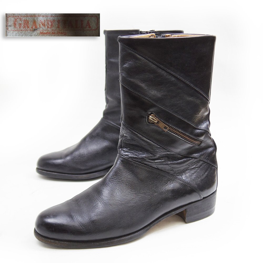 > 27cm相当 GRAND' ITALIA グランドイタリア サイドジップブーツ ポケット ブラック 黒 レザーブーツ 2024.11.15/U9834
