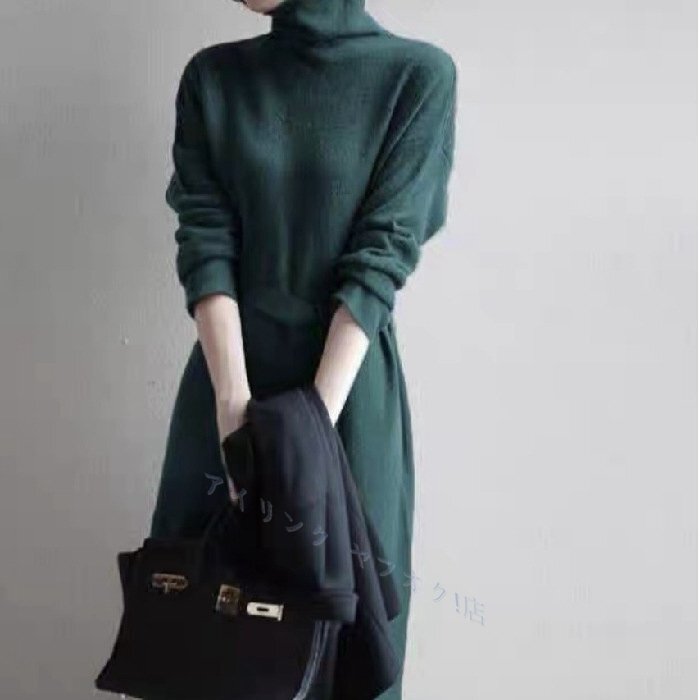 > ☆新品Fサイズ 秋冬 きれいめ大人 ロングワンピース 柔らかい優雅気質 ストレッチ ニットセーター ロングワンピース 緑お色選択可