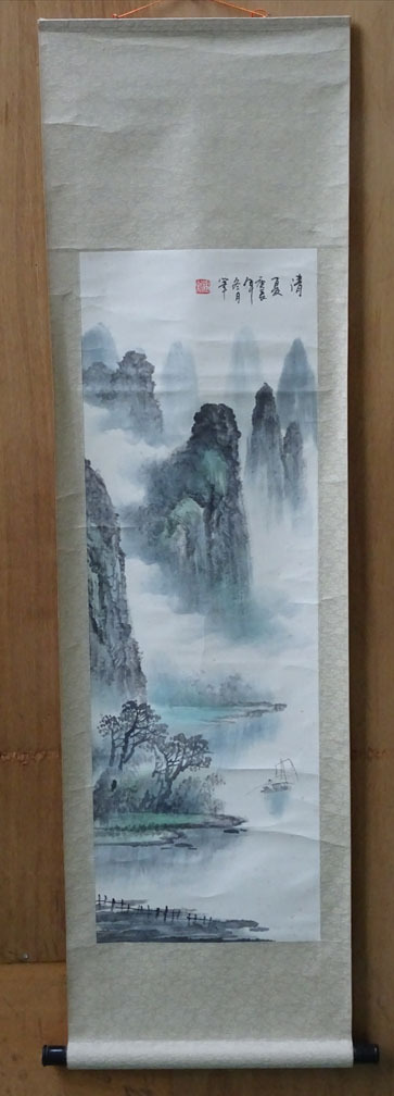 - ■■掛軸「清夏」■「冬月」筆■書銘・落款あり■画サイズ:約32cm×約98cm■■