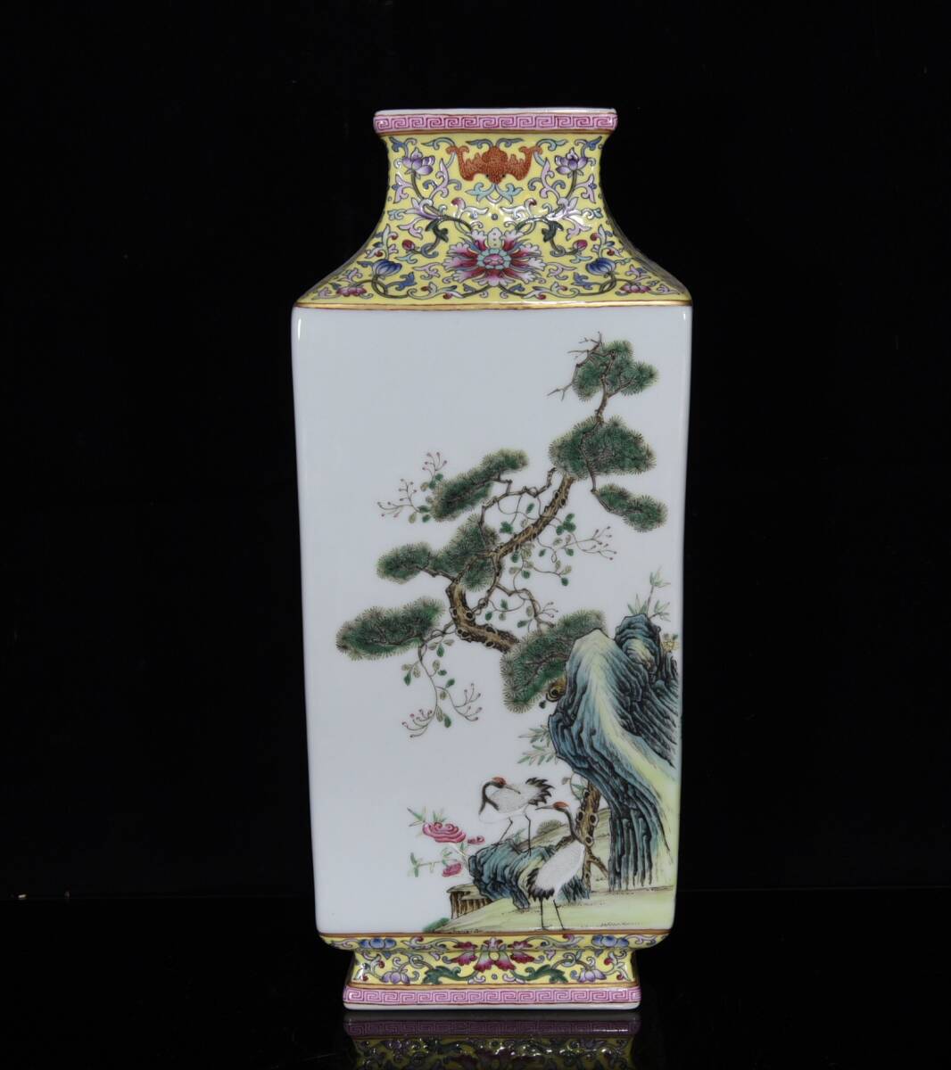 - ◆旧家蔵出◆古美術 中国古玩 大清雍正年製款 粉彩 描金 花卉 花鳥紋四方瓶 古賞物 骨董 時代物 A06