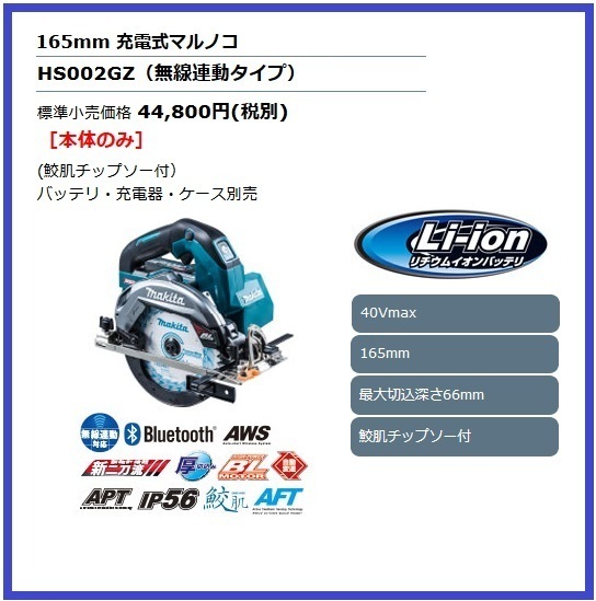 > マキタ 165mm 40Vmax 充電式マルノコ HS002GZ (青) [本体のみ]【無線連動対応】■安心のマキタ純正/新品/未使用■