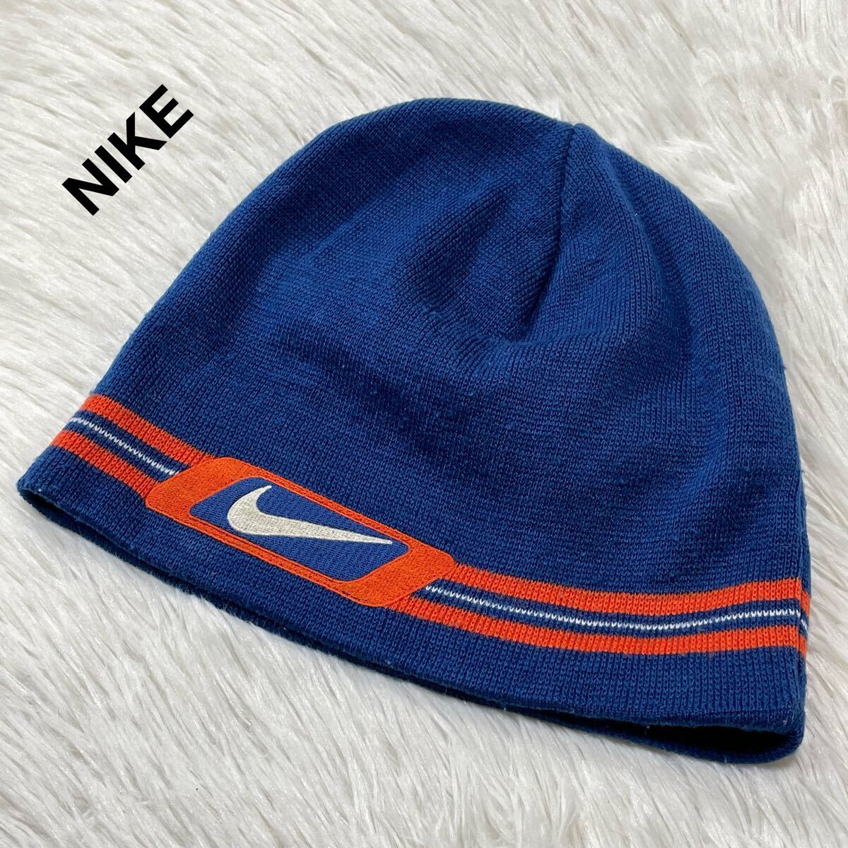 - NIKE ナイキ スウッシュ ロゴ 刺繍 ライン ニット帽 ONE ブルー オレンジ ホワイト CP002