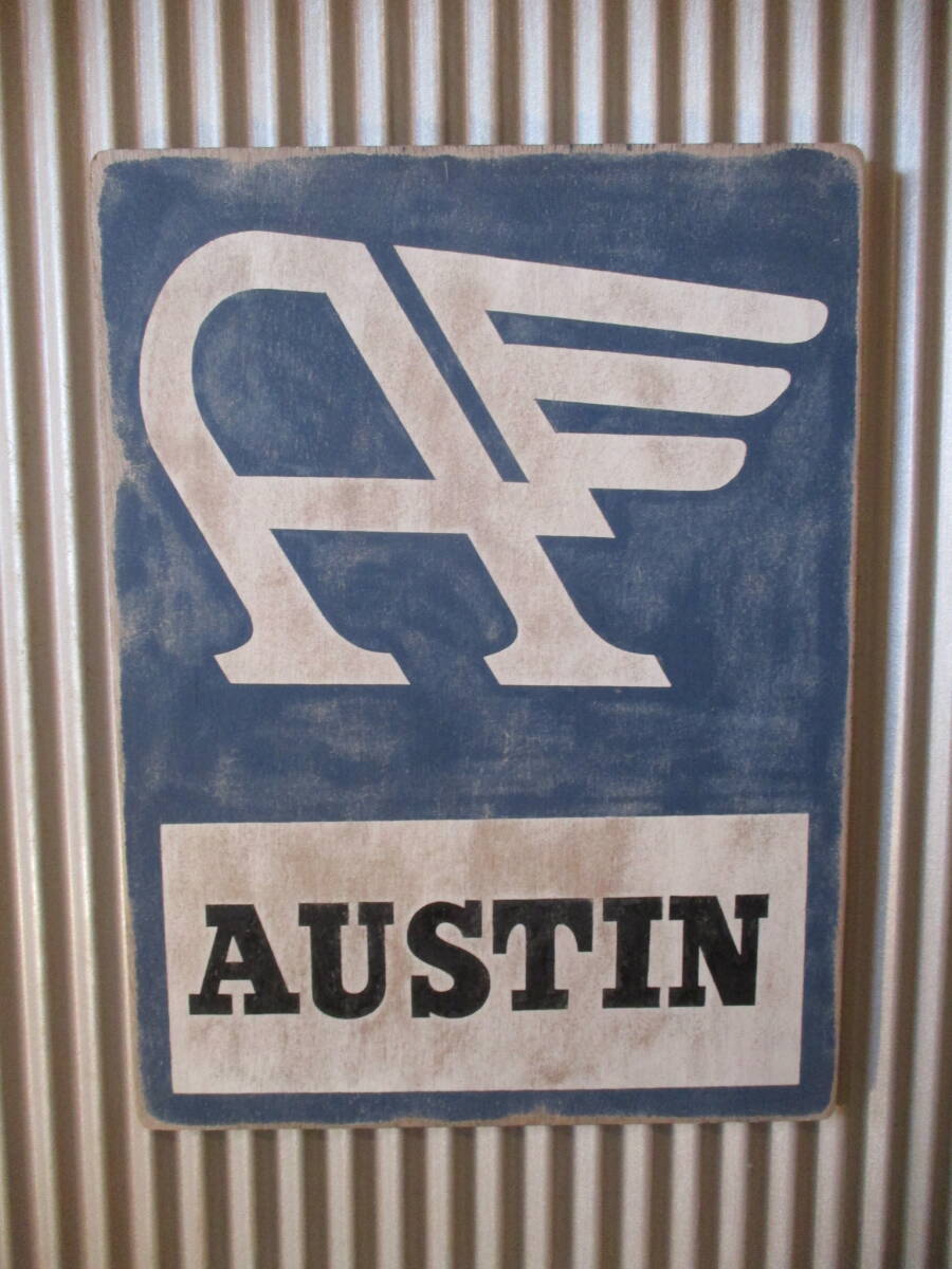 - インテリア木製看板 AUSTIN 検)アドバタイジング企業販促ガレージカスタム英国車MINIMORRISBRITISHLEYLANDLOTUSUK60s70s80s