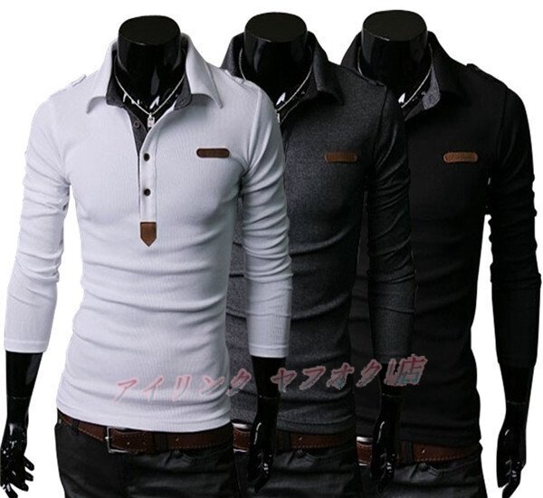 > ☆新品ポロ ゴルフウェア トップス カジュアル スポーツウェア長袖シャツポロシャツ メンズ tシャツ カットソー 長袖 白 M~2XL