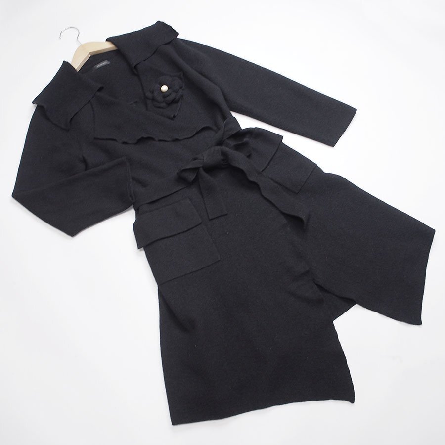 - インゲボルグ 黒 ウールニット コート コサージュ付/サイズ11号/発売時の定価56160円/K24211