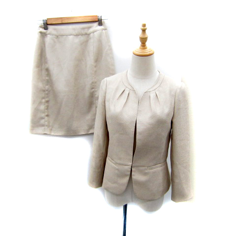 > スーナウーナ Sunauna セットアップ 上下 スーツ ノーカラージャケット ミドル丈 フレアスカート ひざ丈 36 S ベージュ レディース