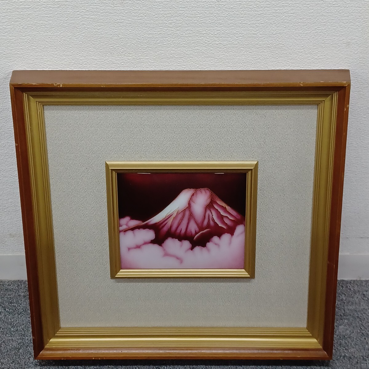 - 石) 額装 陶板画 絵画 赤富士 陶器 コレクション インテリア アート美術品 241121 C1-5