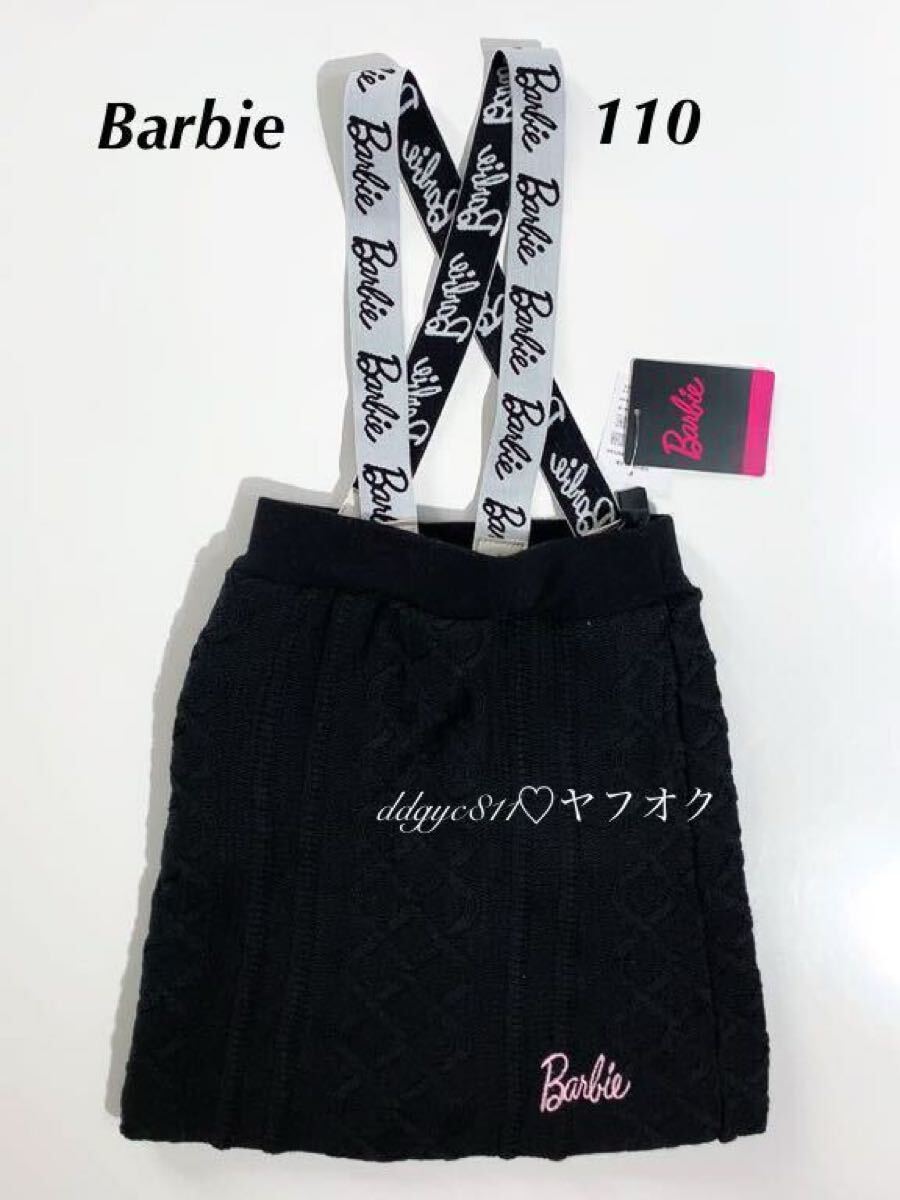 > Barbie ニット スカート サスペンダー付き 110 新品 アラン模様 編み バービー ロゴ刺繍 キッズ 子供服